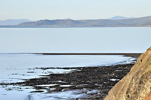 | above: view across Cardigan Bay to the Snowdonia mountains, with one of the Sarnau, Sarn Cynfelyn, in the foreground. It extends out beneath the sea as a steep-sided reef for over six nautical miles. Photo: author. |